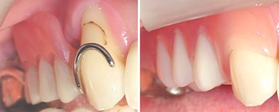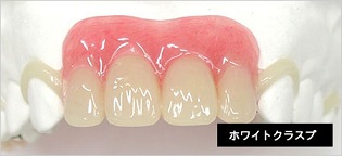 義歯とめるクラスプ(バネ)が白い樹脂なので目立たなく、見た目が綺麗。