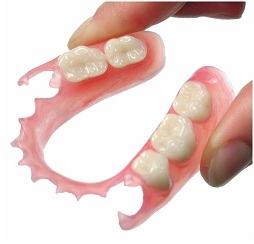 弾力性に富むナイロン樹脂で作られた審美入れ歯スマイルデンチャー。